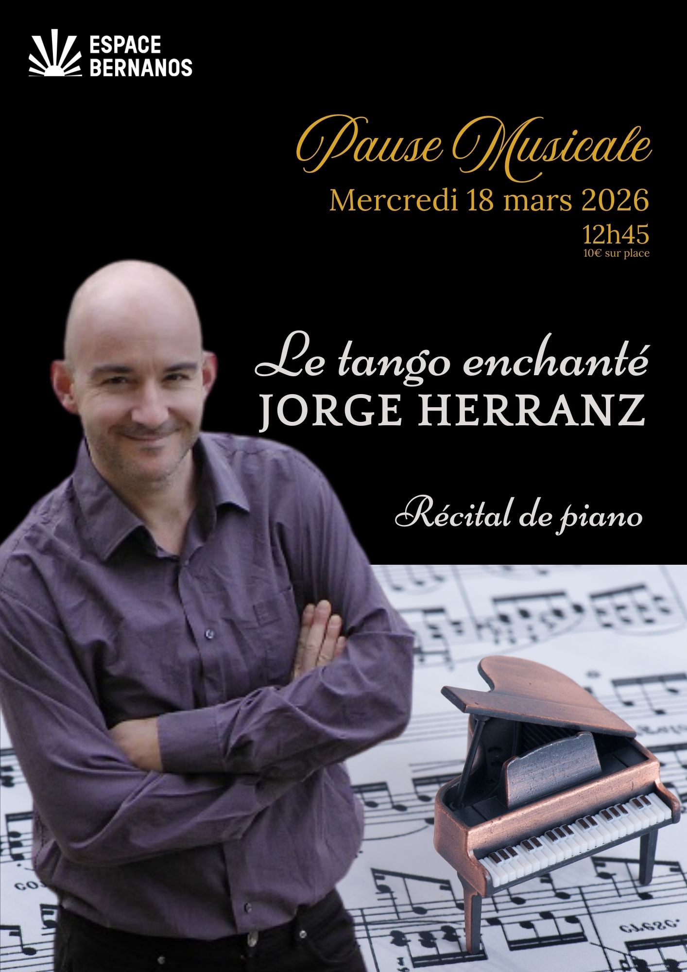 Récital de piano par Jorge Herranz Programme Astor Piazzolla : Milonga del Angel Horacio Salgán : Aquellos tangos camperos, Horacio Salgán : La corralera...