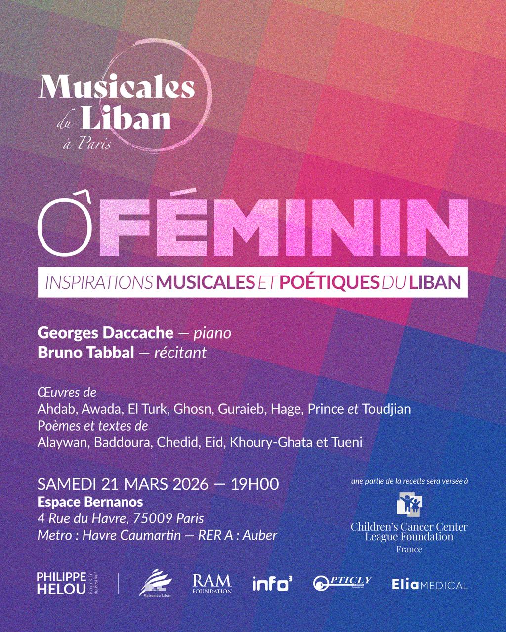 Avec : Georges DACCACHE – Piano etBruno TABBAL – Poésie Oeuvres de – Prince, Hage, Ahdab, Guraeib, Toudjian, Awada et Ghosn Poèmes et textes de – Tueni, Khoury-Ghata, Eid, Alaywan, Chedid et Baddoura...