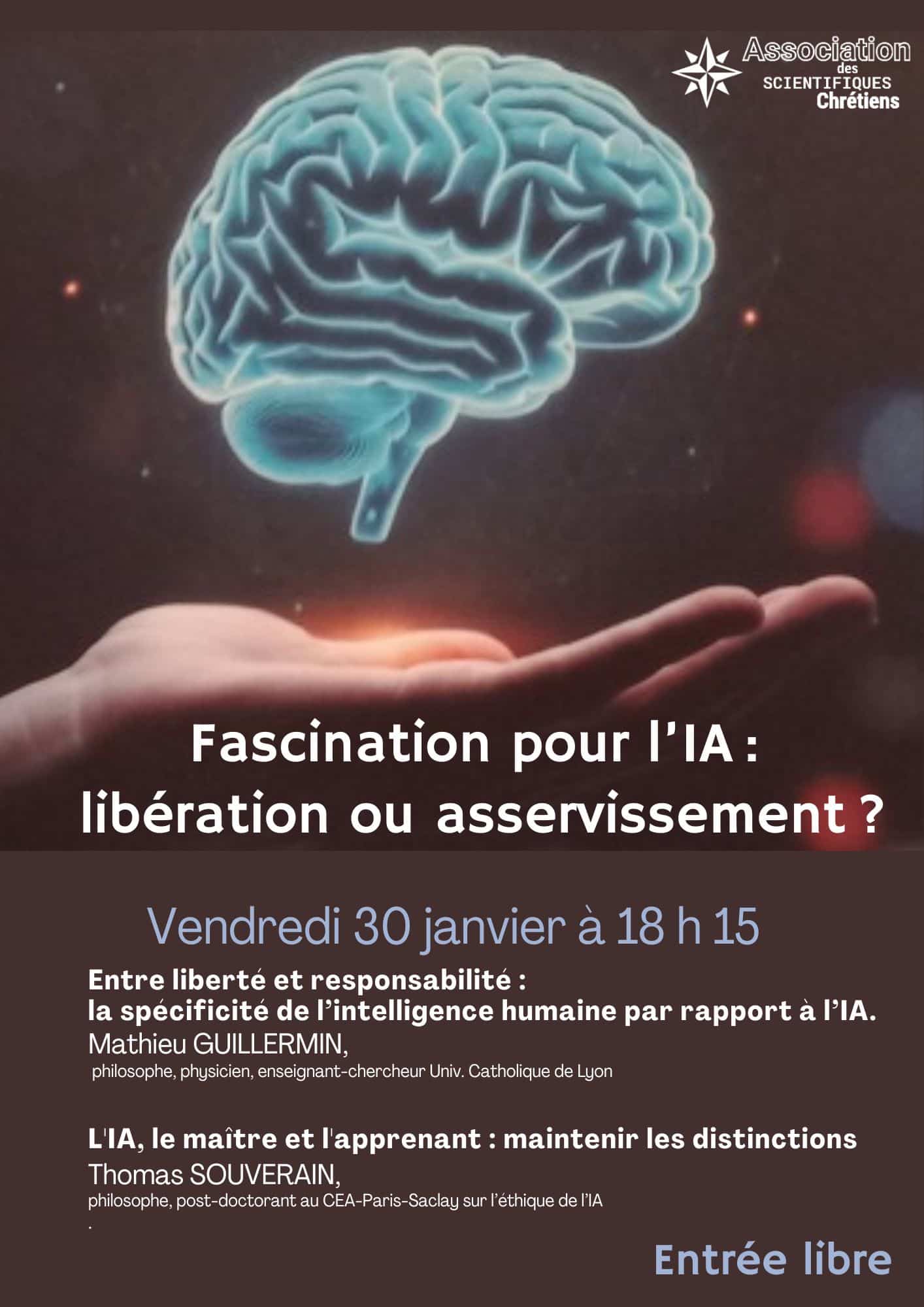 Rencontre à deux voix organisée par l’Association des Scientifiques Chrétiens. Entre liberté et responsabilité : la spécificité de l’intelligence humaine par rapport à l’IA Avec...
